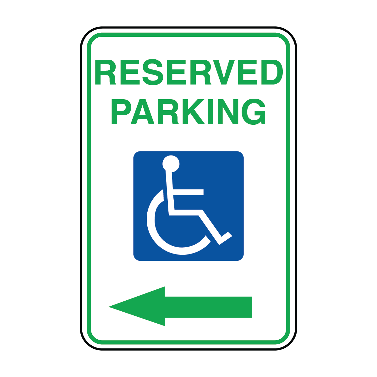 Direct drivers to accessible parking with the Traffic And Parking - Reserved Parking Wheelchair Symbol Left Arrow Sign. Featuring a left-facing arrow and wheelchair symbol, this sign guides motorists to reserved parking spaces for disabled persons in the indicated direction.